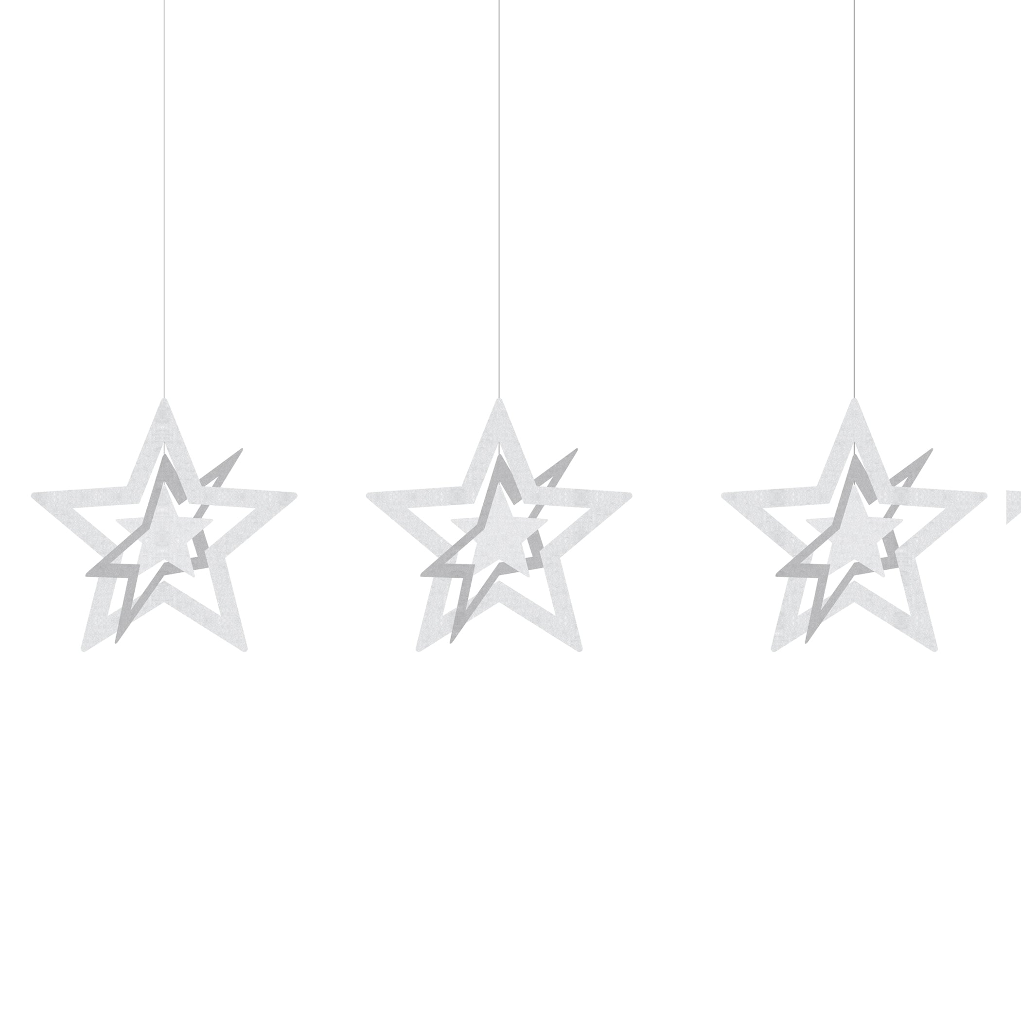 These eye-catching silver stars come in three stacked dazzling sizes—large, medium, and small—twirling gently with every breeze and movement. They revolve slowly and shimmer under the lights, making your New Year's bash or celebration feel like a red carpet affair in the sky. Hang them from ceilings or entryways to create a celestial canopy or curtains of sparkle that feels like a starry celebration night. Suitable indoor and outdoor.