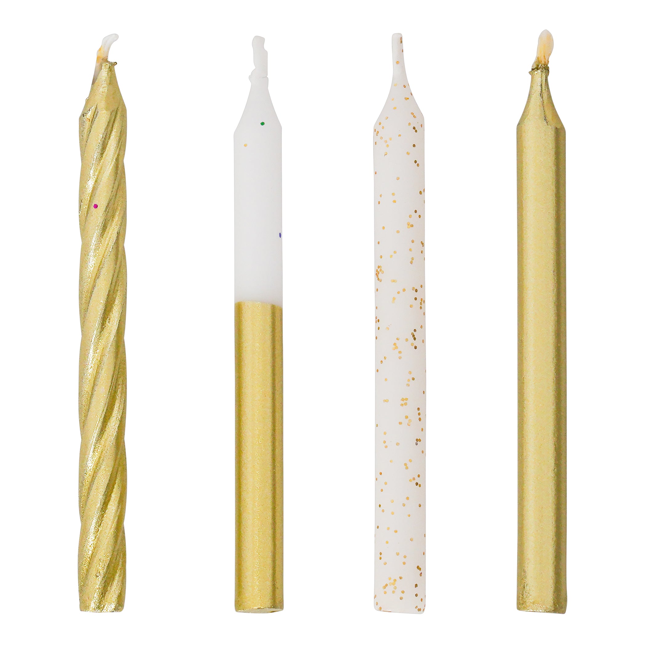 These gold candles will bring the glitz and glam to your birthday cake, the candles are covered in a shiny gold finish and can be combined well with other metallics candles.