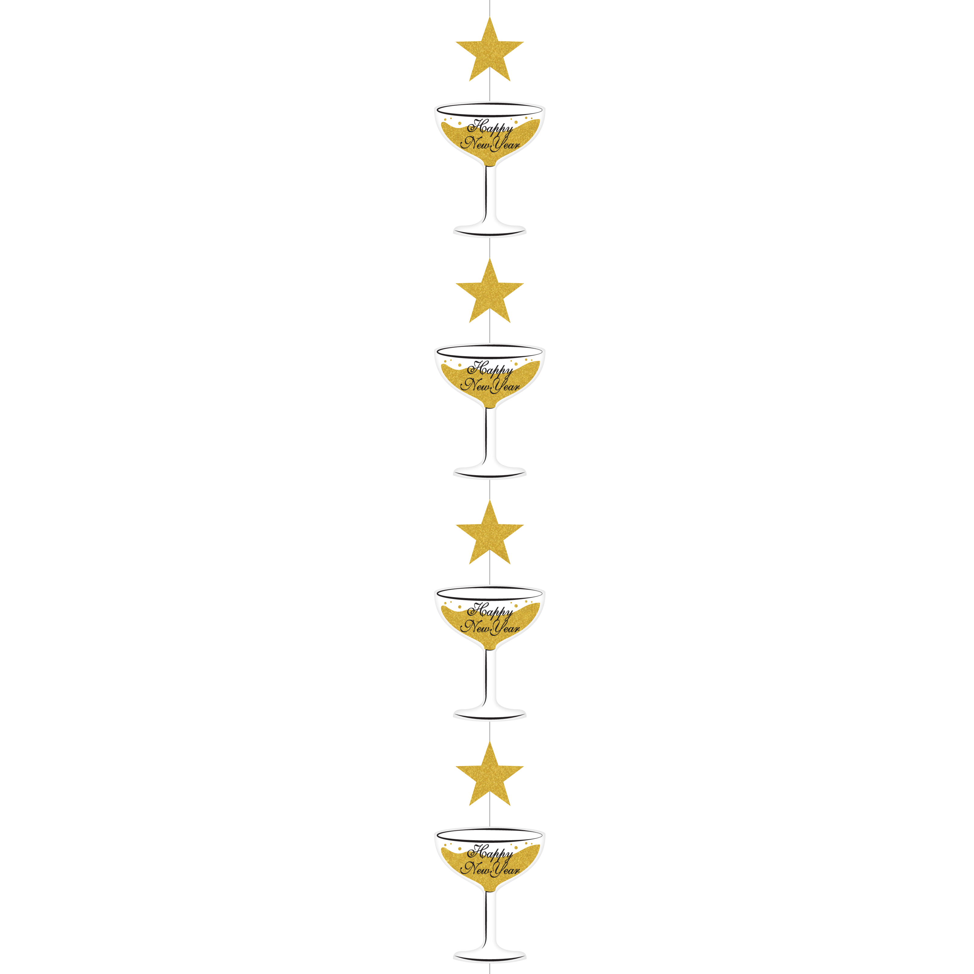 Pour on the sparkle! These faux champagne glasses are designed like filled elegant glasses with shimmering gold liquid and signed with an elegant black script “Happy New Year.” Hang these on backdrops, ceilings, or floating gold stars to add extra dazzle and create the illusion of a toast in mid-air. Adding a touch of glam and a dash of bubbly energy, they are perfect for hanging on backdrops, ceilings, or entries to add a touch of glam and a bubbly energy to the party. Suitable indoor and outdoor.